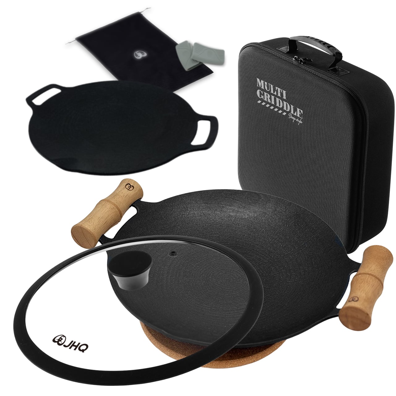 【プレミアムセット】JHQマルチグリドル 29cmSET(付属品:収納ハードケース・木製グリップ・コルク製鍋敷き)+ 25cm(付属品:収納ケース、シリコンミトン)+ 29cm専用ふた