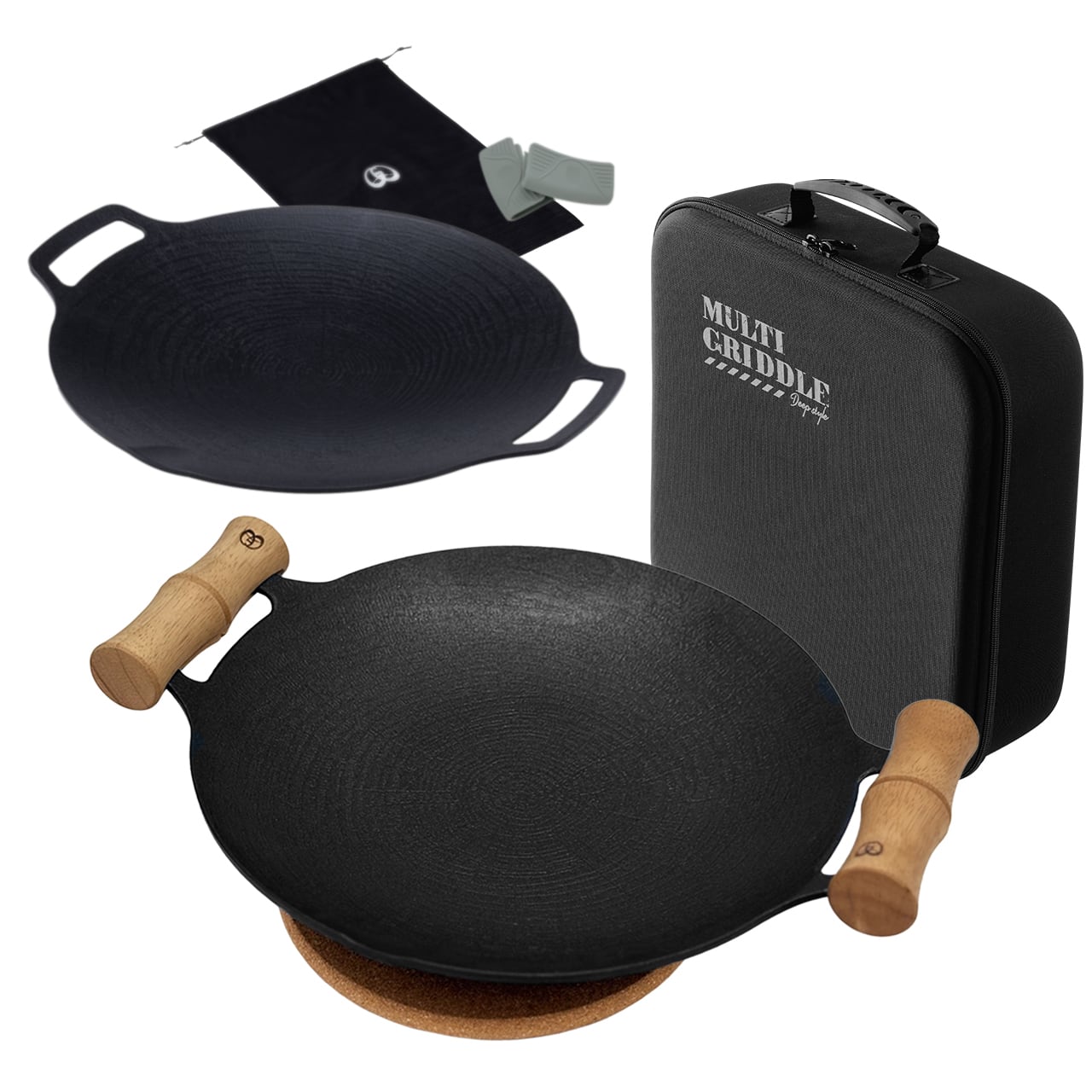 【プレミアムセット】29cmSET(付属品:収納ハードケース・木製グリップ・コルク製鍋敷き) + JHQマルチグリドル 33cm(付属品:収納ケース・シリコンミトン)