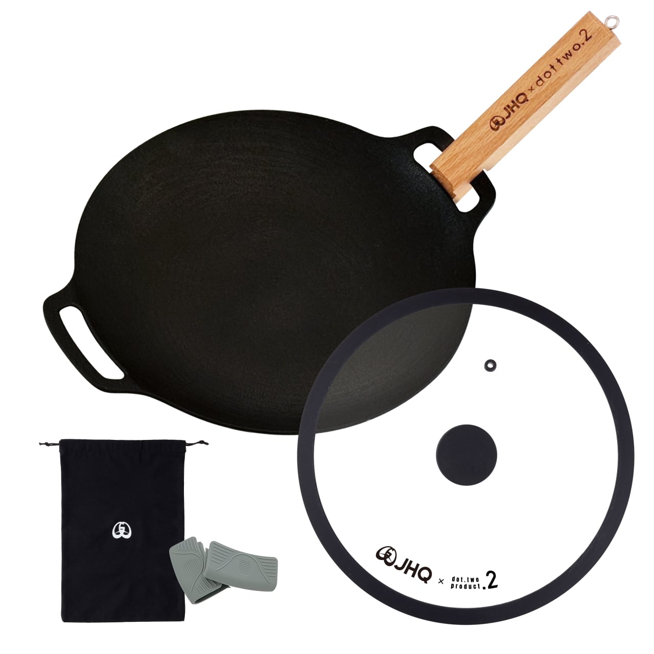 【JHQ × dot two .2 コラボセット】マルチグリドル 29cm本体、29cm専用コラボふた、ウッドハンドル、付属品(収納ケース・シリコンミトン) のコラボセット