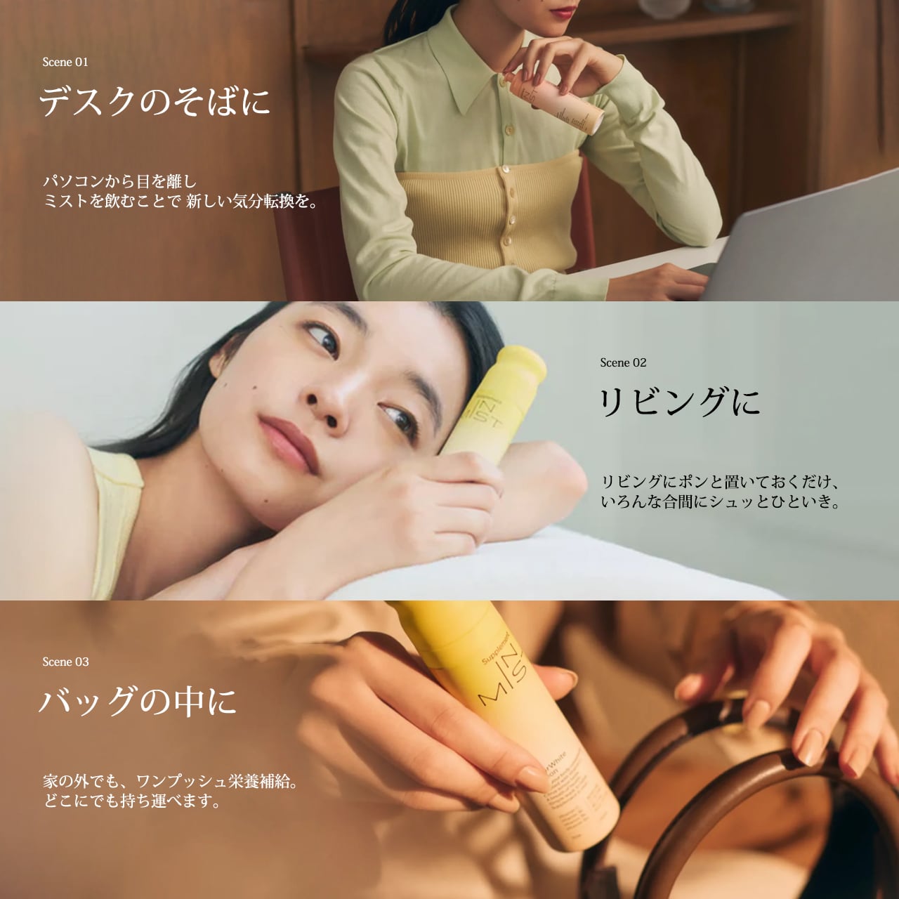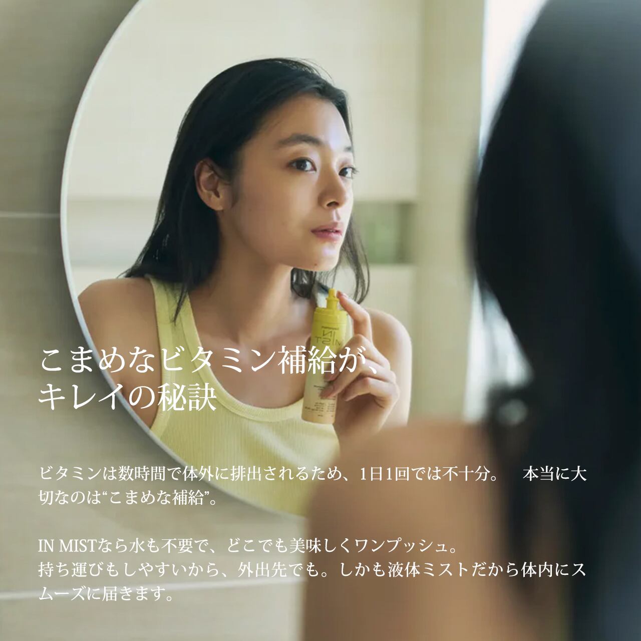 IN MISTは、ビタミンB群やDなど7種のビタミンを補えるミスト型サプリメント。ビタミンは心身の健康や美容を支える重要な栄養素で、毎日の補給が欠かせません。