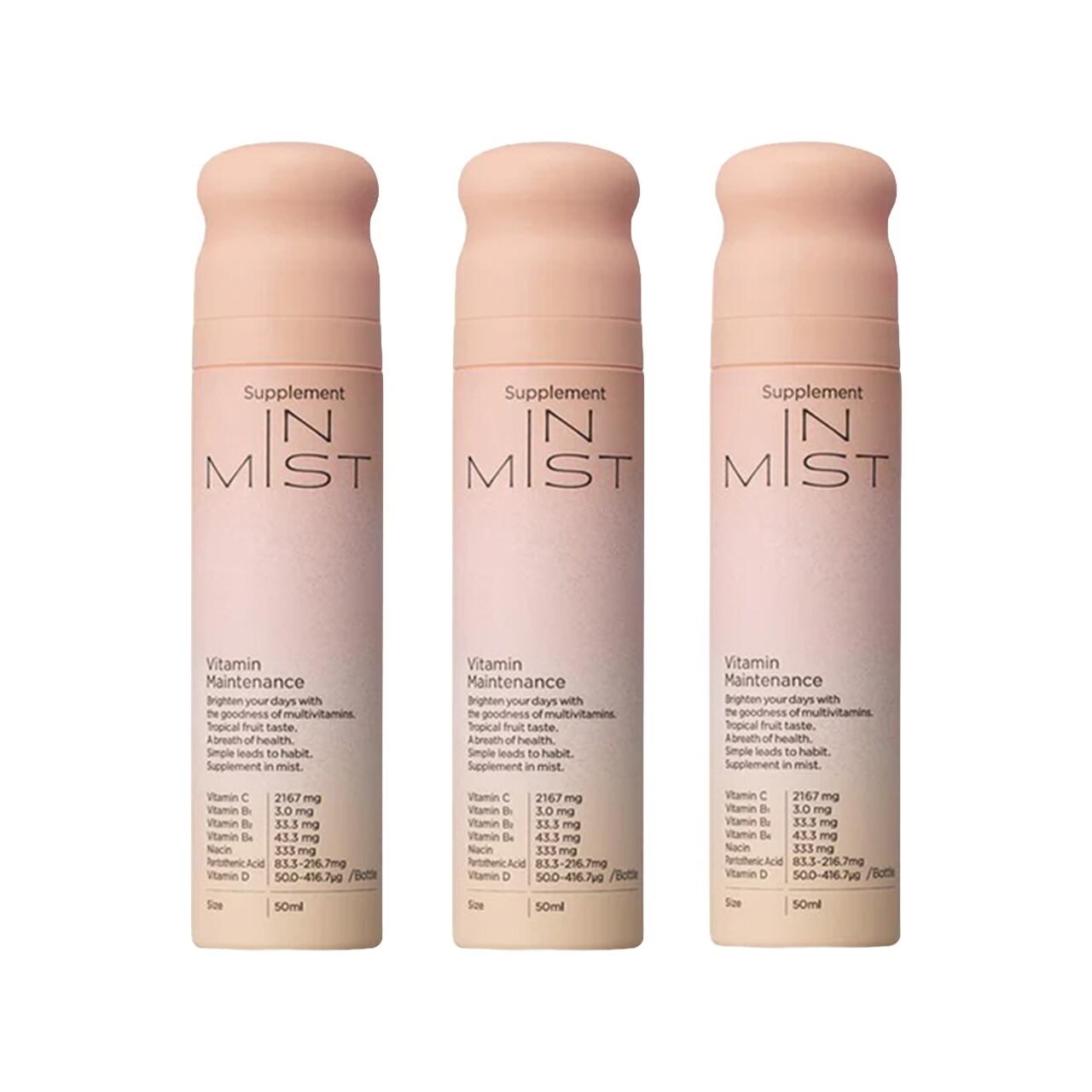 IN MISTは、ワンプッシュ1mlで7種のビタミンが美味しく補給できる、ミストタイプのサプリメントです。