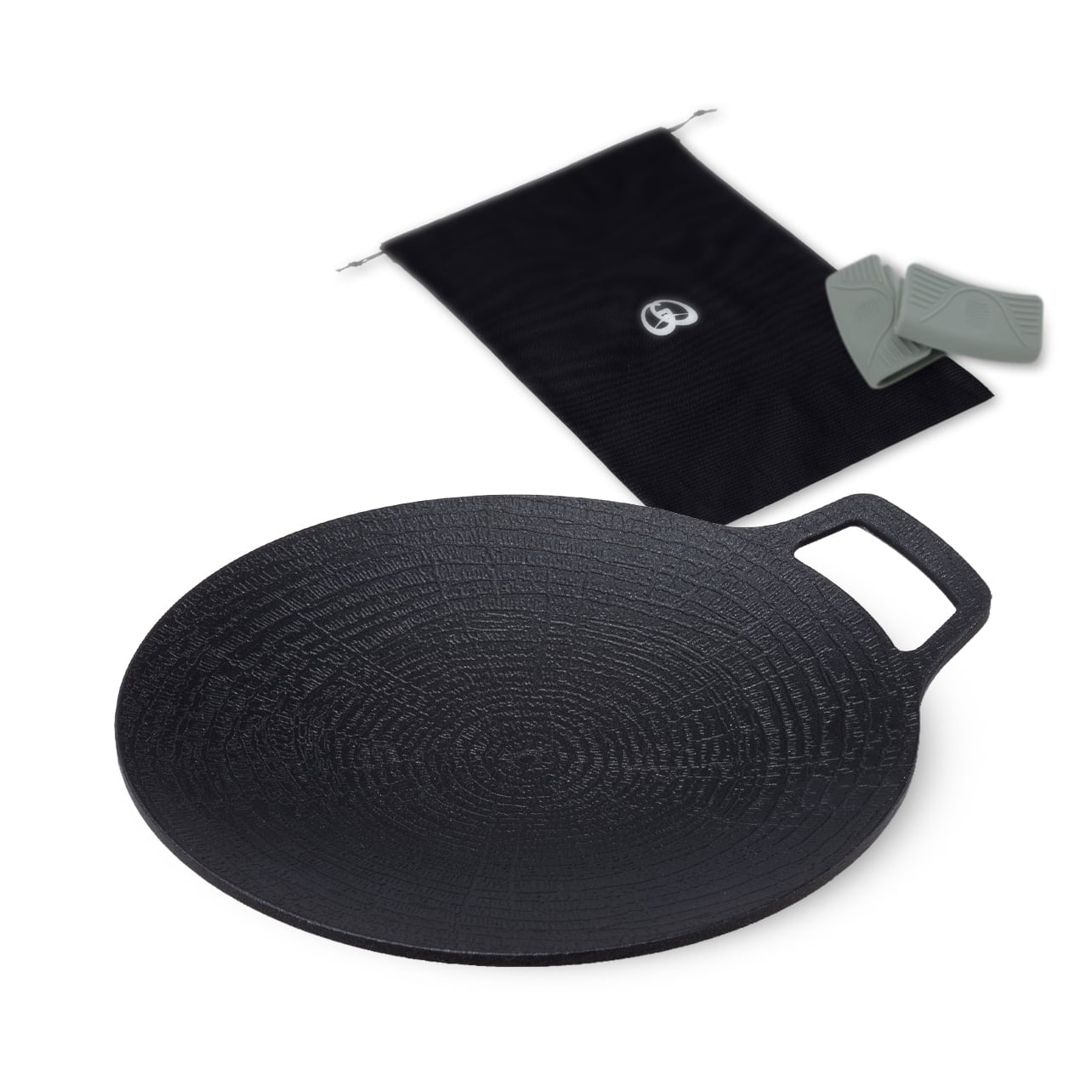 鉄板マルチグリドルは、手軽に持ち運びできる驚きの軽さで、サビや傷に強く、耐摩耗性に優れたイノーブルコーティングが施されています。