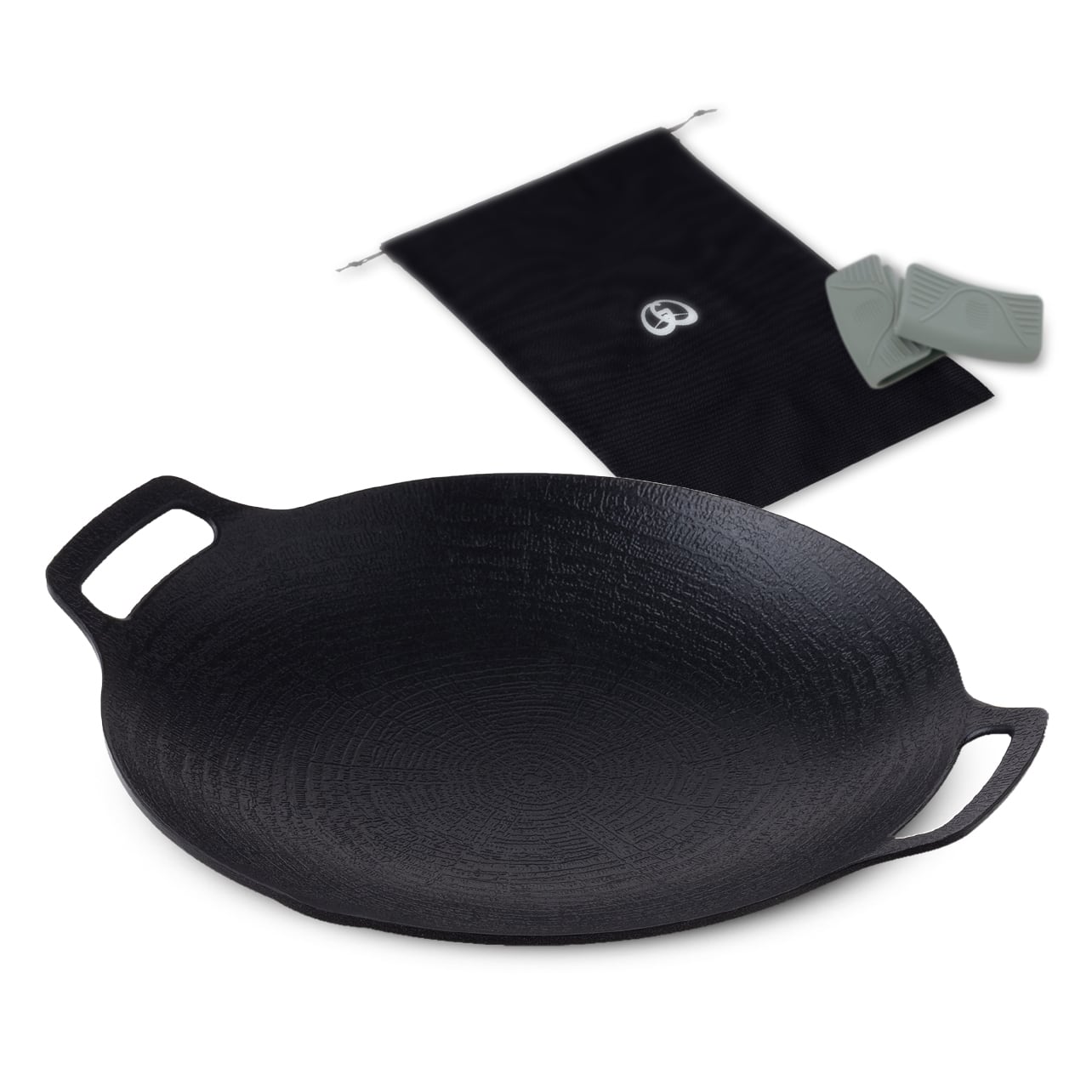鉄板マルチグリドルは、手軽に持ち運びできる驚きの軽さで、サビや傷に強く、耐摩耗性に優れたイノーブルコーティングが施されています。
