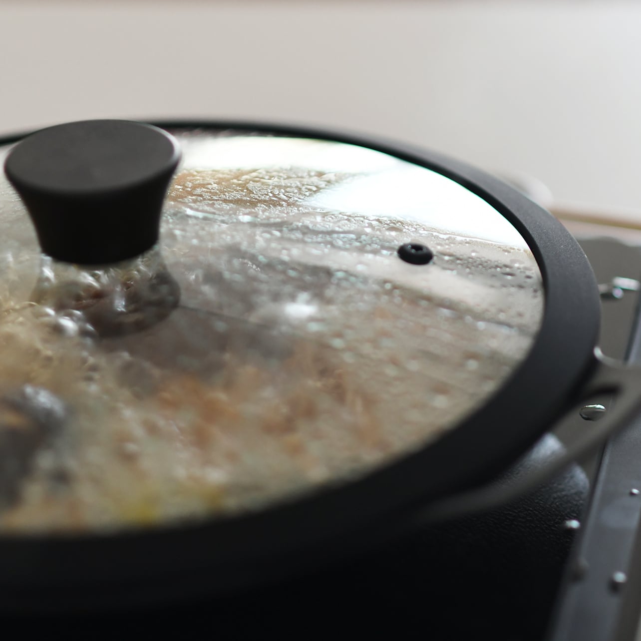 また、専用ふたはガラス製です。ガラスのふたは中身が見えるので、ふたを開けずに調理具合の確認ができて便利です。
