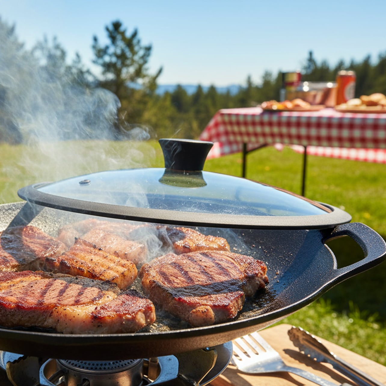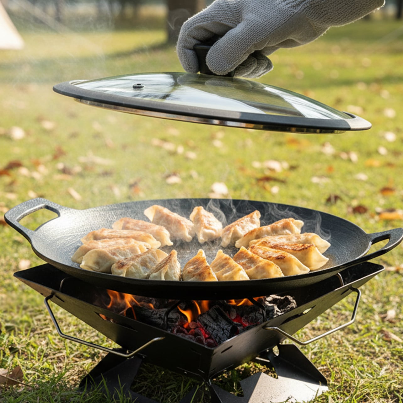 ふたの縁のシリコンが鉄板マルチグリドル本体に密着してしっかりフィットするので、調理中のズレを防ぎ、ストレスフリーで安全です。