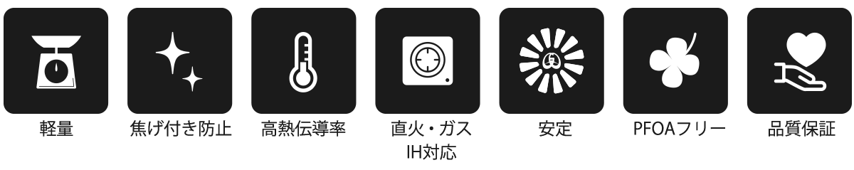 材質はアルミ合金ながら、まるで鉄のようなしっかりとした焼き上がりと、驚くほどの軽さ・扱いやすさが特徴です。